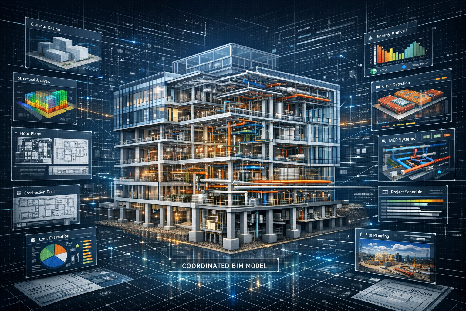 Through the use of intelligent digital modeling and collaborative workflows, we help bridge the gap between architectural design, structural engineering, and building systems coordination. Our BIM-driven processes enable teams to evaluate design options, detect potential conflicts early, and maintain consistency across all project disciplines. This results in improved design quality, reduced project risks, and a more streamlined project development process.